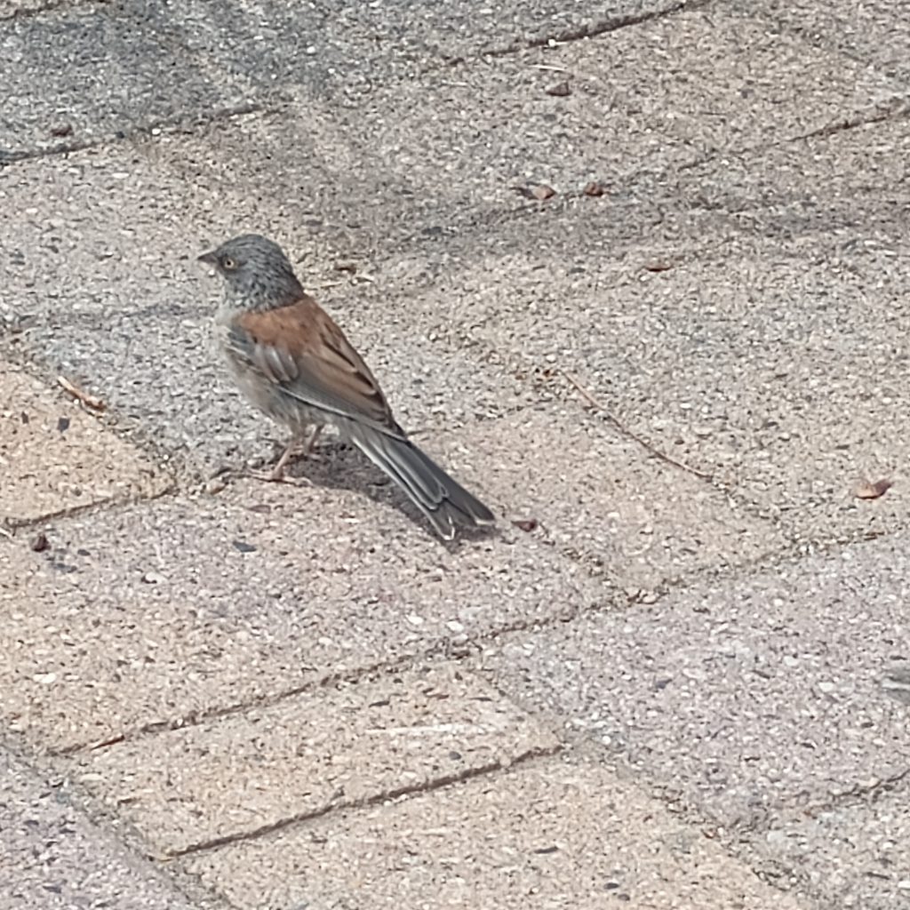 • I’ve seen a downy woodpecker, a family of sparrows (2 adults, about 7 young ones learning how to be feed at my feeders), my first purple finch out here, and numerous chickadees, inca & white wing doves, just to name a few.